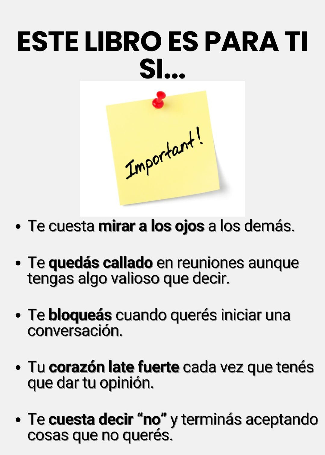 Pero voy más allá: si aplicás al menos un ejercicio y no notás una mejora real en tu confianza diaria, no solo te devuelvo lo que pagaste, sino que además podés quedarte con el libro como regalo.
